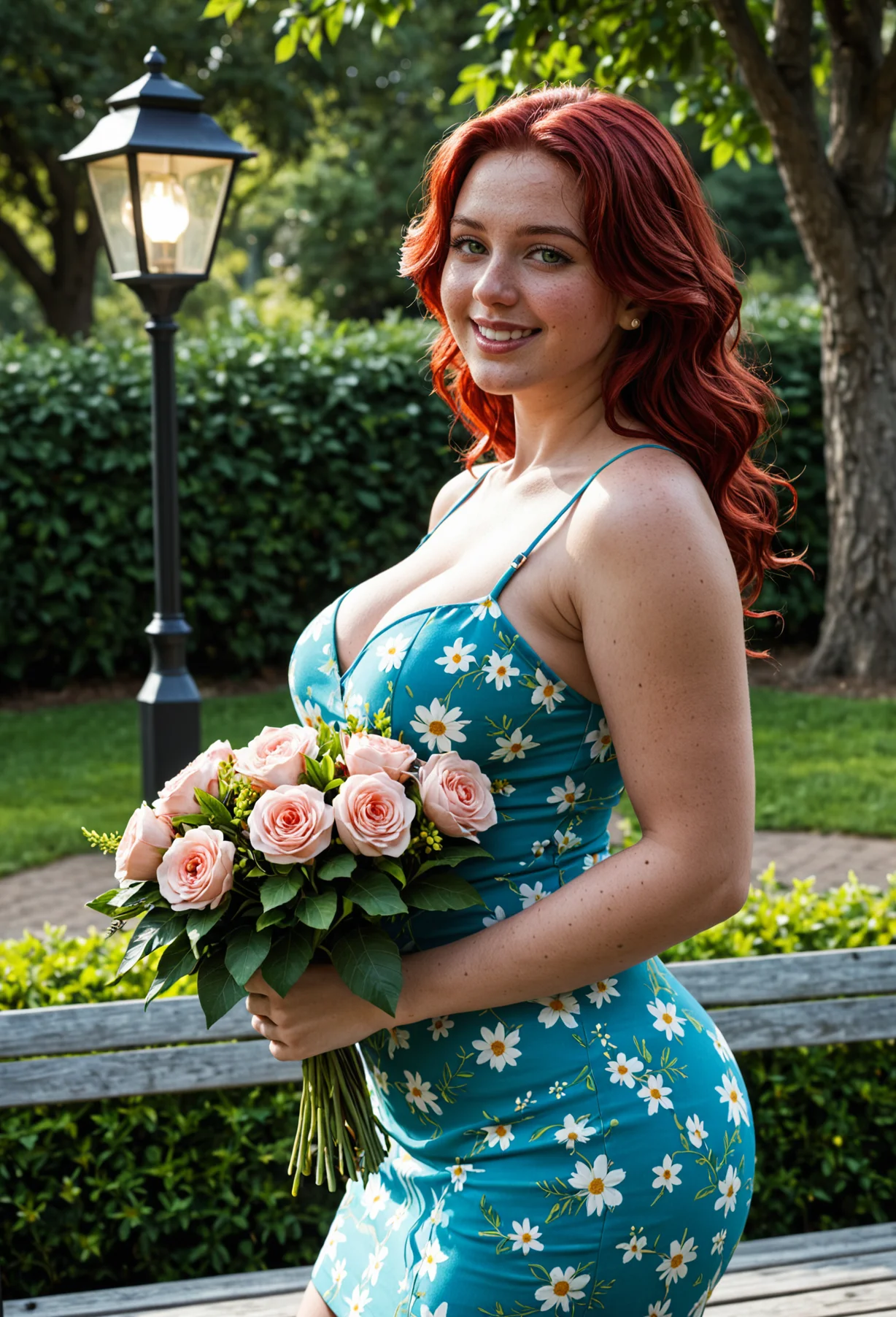 The image is a portrait of a young woman with long red hair. She is standing in a garden with a wooden bench and a lamp post in the background. The woman is wearing a strapless dress with a floral print in shades of green, pink, and white. She has a big smile on her face and is looking directly at the camera. The overall mood of the image is happy and relaxed.The image shows a young woman with long red hair standing in a garden. She is wearing a green dress with white daisies printed all over it. The dress has thin straps and a sweetheart neckline. The woman is standing in front of a wooden bench and is smiling at the camera. The garden is filled with colorful flowers and trees, and there are street lamps in the background. The sky is overcast and the overall mood of the image is happy and relaxed.The image shows a young woman with long red hair standing in a garden. She is wearing a light blue swimsuit with a floral print in shades of red, orange, and yellow. The swimsuit has thin straps and a deep V-neckline. The woman is posing with one hand on her hip and the other resting on her thigh. She has a slight smile on her face and is looking directly at the camera. The garden is filled with colorful flowers and plants, and there is a lamp post in the background.The image is a portrait of a young woman with long red hair. She is standing in a garden with a green bench and a lamp post in the background. The woman is wearing a white dress with red and yellow flowers printed all over it. She has a big smile on her face and is looking directly at the camera. Her hair is styled in loose waves and she is wearing large hoop earrings. The overall mood of the image is happy and relaxed.The image shows a young woman with red hair standing on a brick pathway in a park. She is wearing a blue dress with white daisies on it. The dress has a halter neckline and thin straps. The woman is smiling and looking directly at the camera. Behind her, there are trees and bushes with red flowers. The sky is blue and there are a few lampposts visible in the background.The image shows a young woman with long red hair standing in a park. She is wearing a white dress with yellow sunflowers printed all over it. The dress has a deep V-neckline and thin straps that go over her shoulders. The woman is posing with one hand on her hip and the other hand resting on a wooden bench. She has a big smile on her face and is looking directly at the camera. In the background, there are trees and bushes with white flowers. The sky is blue and there is a street lamp on the left side of the image.The image shows a young woman with long red hair standing in a garden. She is wearing a blue dress with white daisies on it. The dress has a sweetheart neckline and short sleeves. The woman is standing in front of a row of pink roses and there are trees and lampposts in the background. She has a smile on her face and is looking directly at the camera. The overall mood of the image is happy and relaxed.The image shows a young woman with long red hair sitting on a wooden bench in a garden. She is wearing a light blue swimsuit with a floral print in shades of orange and yellow. The swimsuit has a halter neckline and a tie at the front, creating a flattering silhouette. The woman is posing with one hand on her hip and the other resting on the bench. She has a slight smile on her face and is looking directly at the camera. In the background, there are trees and bushes, and a street lamp can be seen on the left side of the image.The image is a portrait of a young woman with long red hair. She is standing in a park or garden with trees and bushes in the background. The woman is wearing a blue dress with a floral pattern in shades of pink, red, and green. She has a big smile on her face and is looking directly at the camera. Her hair is styled in loose curls and she is wearing large hoop earrings. The overall mood of the image is happy and relaxed.The image is a portrait of a young woman with long red hair. She is standing in a garden with a wooden bench in the background. The woman is wearing a white dress with red and yellow flowers printed all over it. She has a big smile on her face and is posing with one hand on her hip and the other resting on her thigh. The garden is filled with greenery and colorful flowers, and there are trees and bushes in the distance. The sky is blue and the overall mood of the image is happy and relaxed.The image shows a young woman with long red hair standing in a garden. She is wearing a green dress with white daisies on it. The dress has a halter neckline and thin straps. The woman is posing with one hand on her hip and the other resting on her thigh. She has a big smile on her face and is looking directly at the camera. In the background, there are trees and bushes, and a street lamp can be seen on the right side of the image.The image is a portrait of a young woman with long red hair. She is standing in a garden with a wooden bench and a tree in the background. The woman is wearing a strapless dress with a green and white daisy print. She has her hand on her hip and is smiling at the camera. The sky is blue and there are a few clouds in the sky. The overall mood of the image is happy and relaxed.The image shows a young woman with long red hair standing in a garden. She is wearing a light blue dress with a yellow sunflower print. The dress has a halter neckline and thin straps that cross over her shoulders. She has a big smile on her face and is looking directly at the camera. The garden is filled with colorful flowers and trees, and there is a brick pathway in the background. The sky is blue and the overall mood of the image is happy and relaxed.The image is a portrait of a young woman with long red hair. She is standing in a garden with pink roses and trees in the background. The woman is wearing a light blue dress with a floral pattern in shades of pink, red, and white. She has a big smile on her face and is looking
